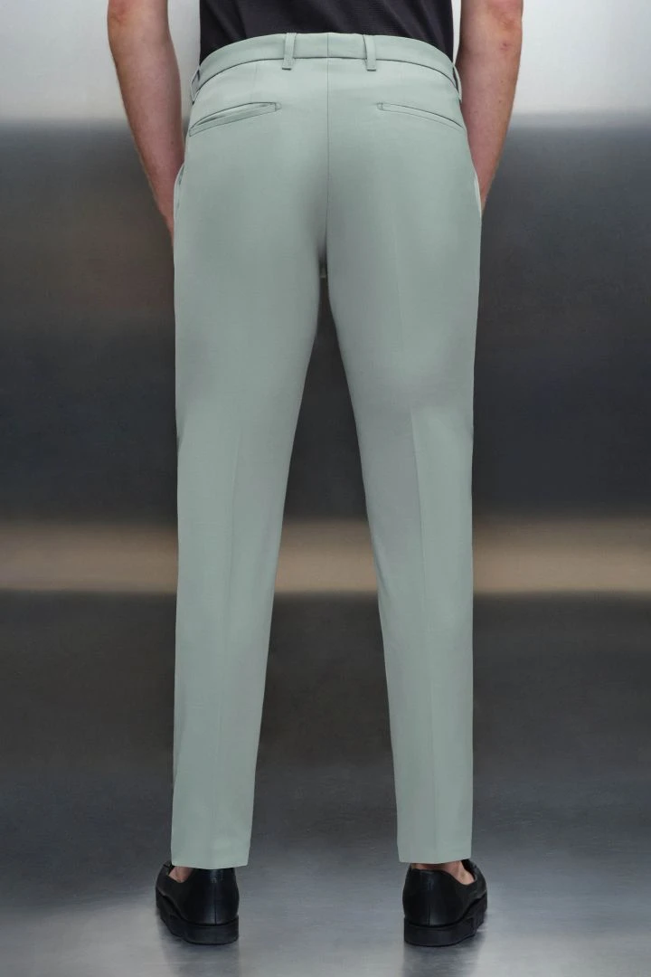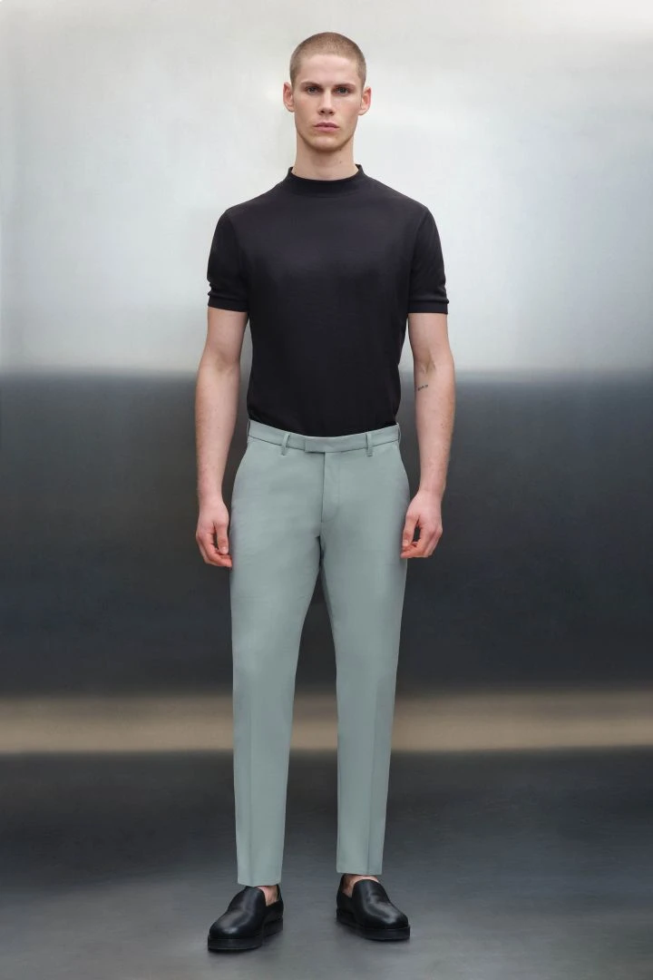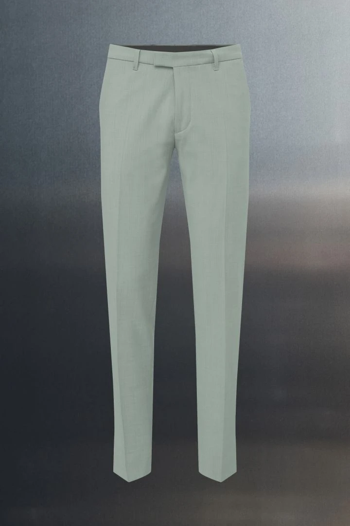 PIET_SK ist eine klassische Anzughose mit Bügelfalte und schmal zulaufenden Beinen. Durch ihre mittlere Bundhöhe sitzt sie knapp unterhalb der Hüfte.