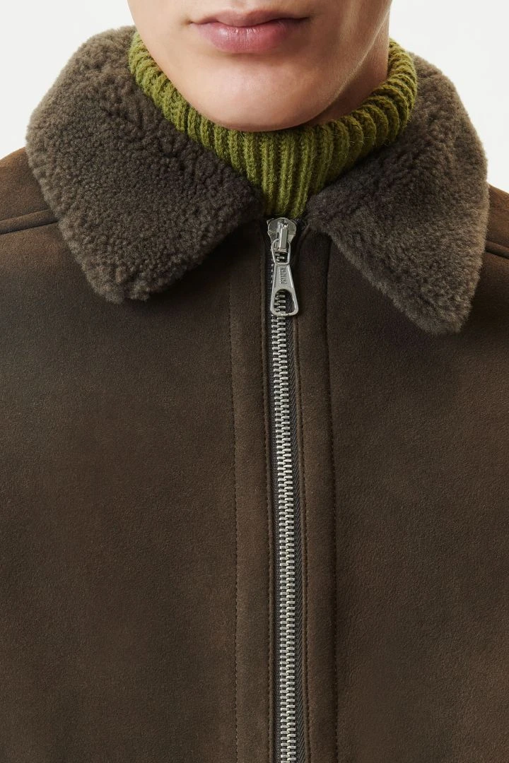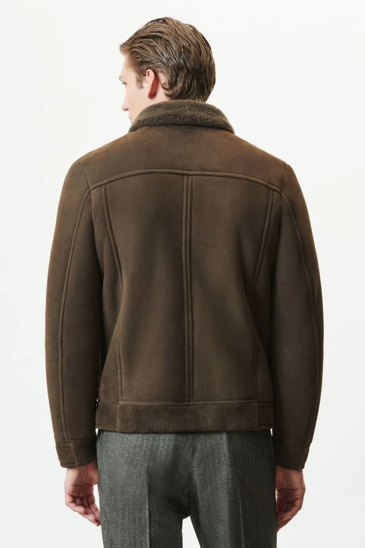 GORANO ist eine Blouson Jacke mit zwei Leisteneingrifftaschen und einem hochwertigen polierten Reißverschluss. Die Jacke ist mit einem Fellkragen ausgestattet und verfügt über vorgezogene Schulternähte für eine moderne Passform. Die elastischen Einsätze hinten am Saum und an den Ärmeln sind mit Leder überzogen und sorgen für einen angenehmen Tragekomfort.