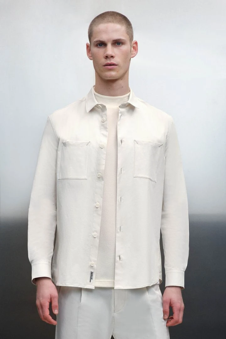 LOID ist ein leicht verkürztes Hemd mit 2 aufgesetzten Brusttaschen. Durch den weiten Fit kann es auch als Overshirt getragen werden.