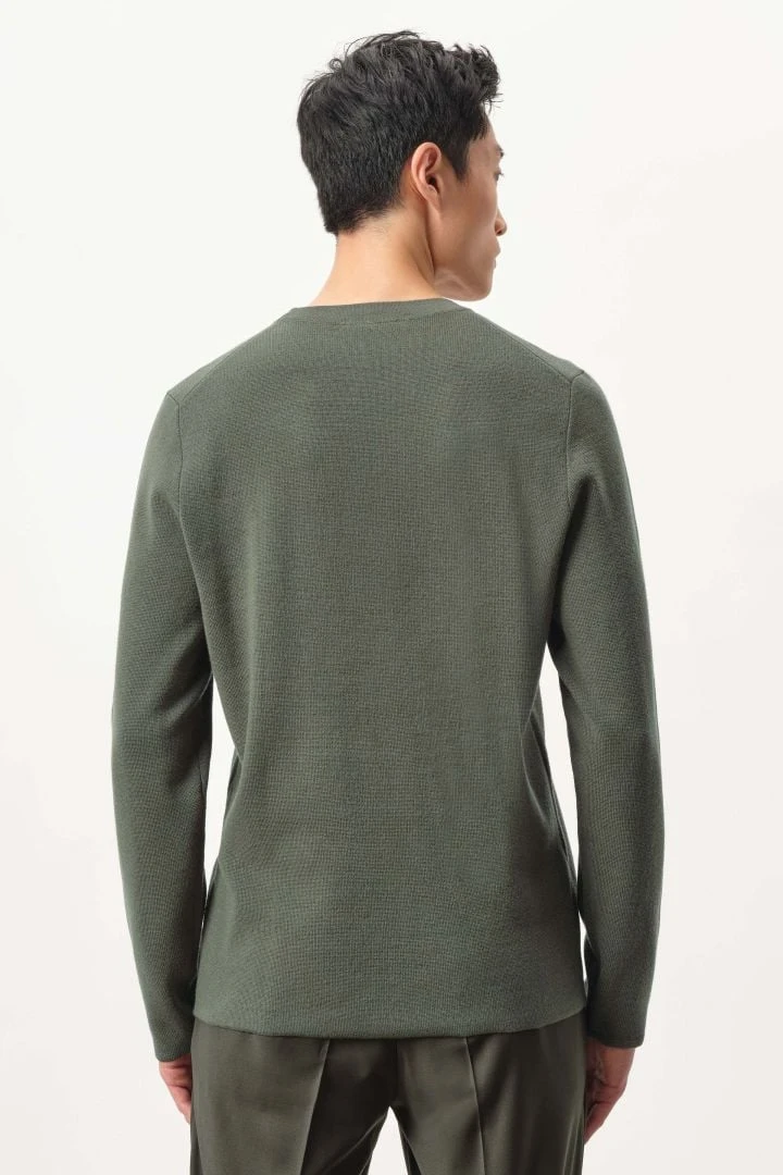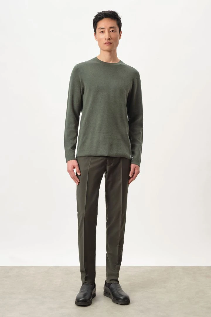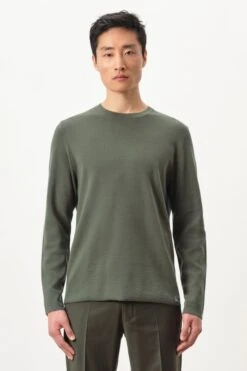 ELRIK ist ein cleaner Rundhals-Pullover ohne Saumabschluss, der für einen minimalistischen Look steht.