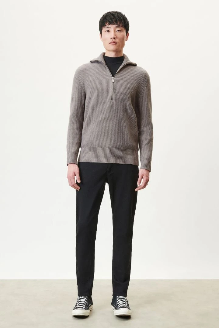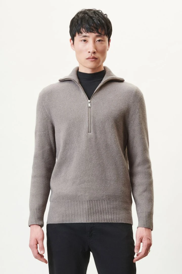 MANUELO ist ein Half-Zip-Pullover mit einem hohen Kragen. Der Pullover ist in Rippenstrick gearbeitet, was ihm eine besondere Textur verleiht.