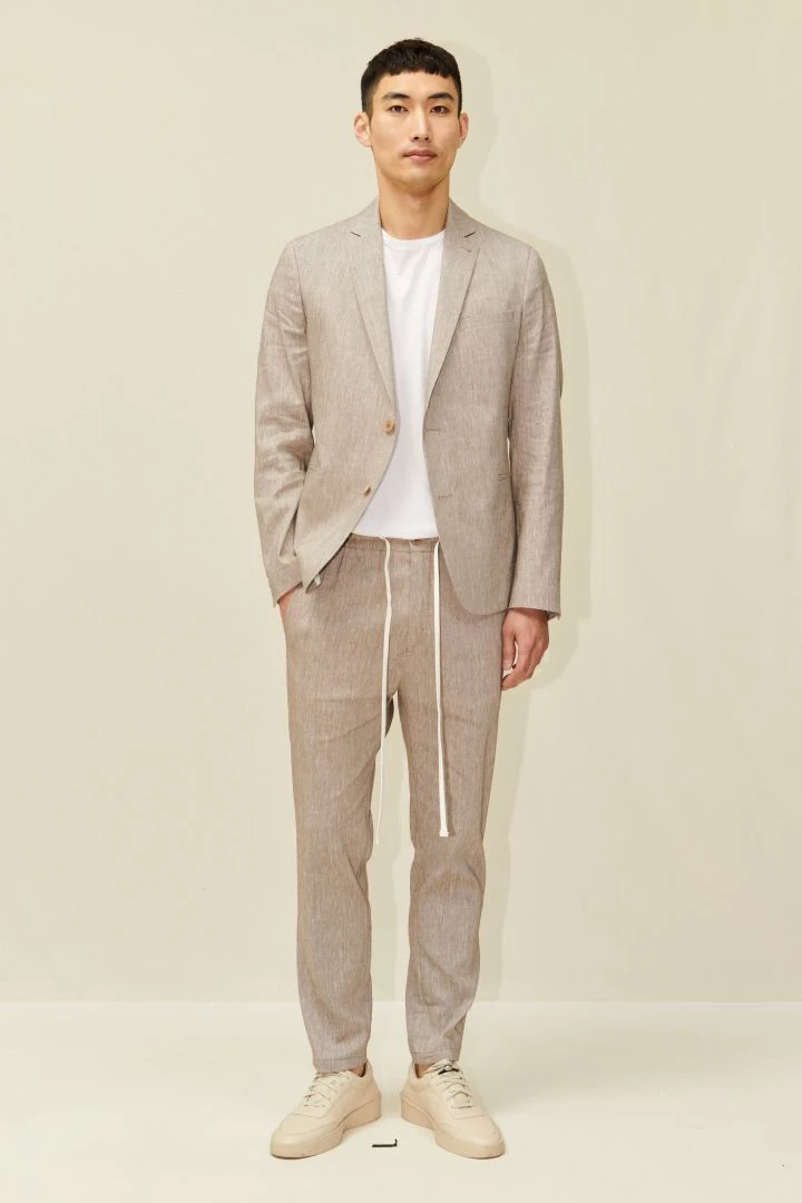 JEGER besteht aus einer sommerlichen und kühlenden Leinenmischung.