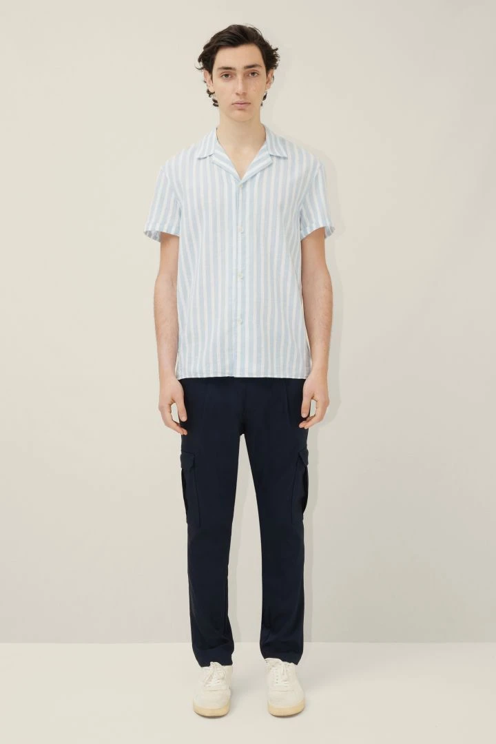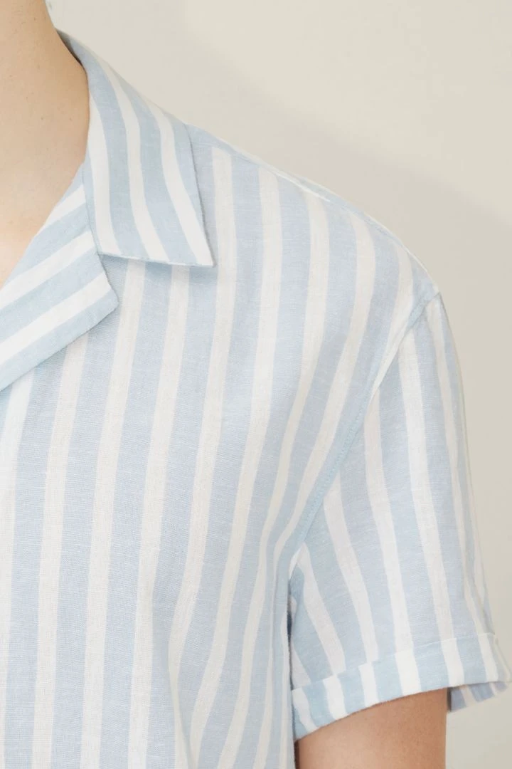 BIJAN hat ein breites Streifen Dessin und besteht aus einem luftigen Baumwoll-Leinen Mix.
