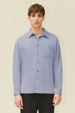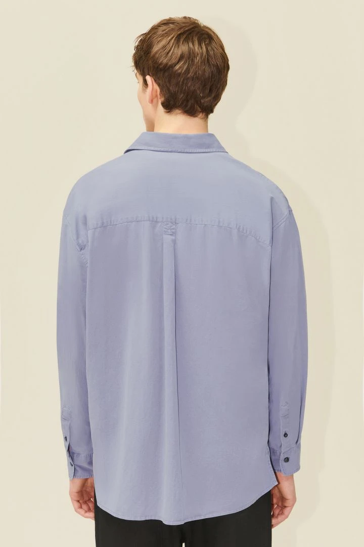 HARCON ist ein innovatives oversize Hemd mit großen Manschetten, einem Kentkragen und einer überschnittenen Schulter. An der Schulterpasse gibt es eine Quetschfalte, die mit einem Stitching Detail versehen ist.