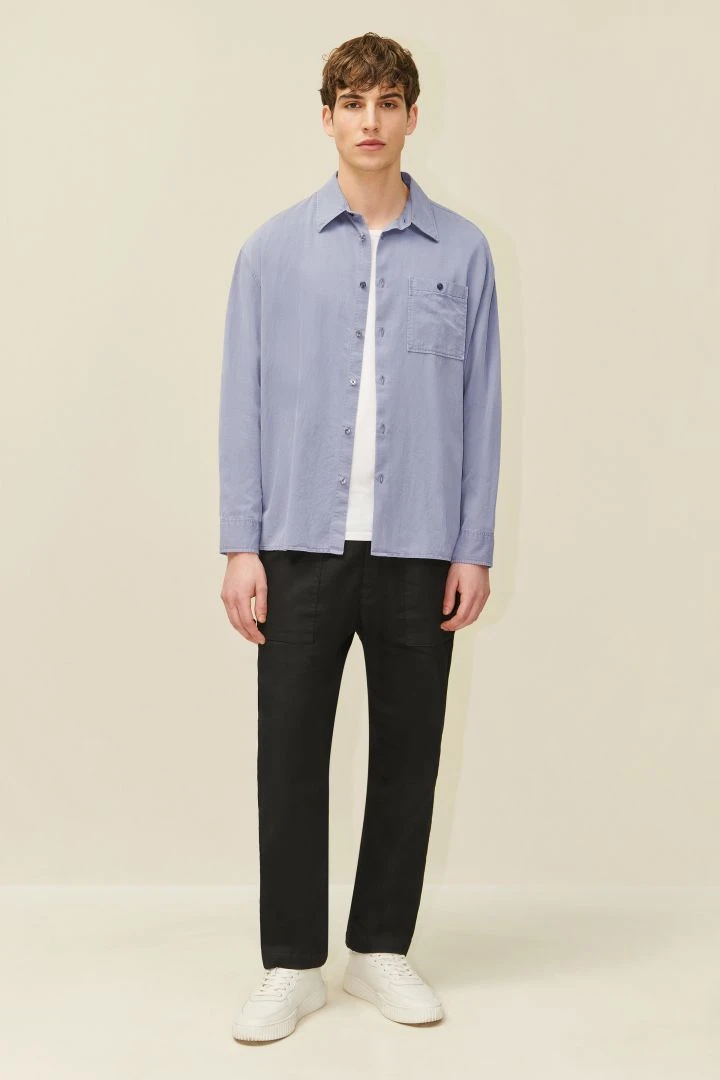 Die softe und fließende Tencel Ware ist ein Cold-Dye Überfärber mit Wascheffekten und hat dadurch einen leichten Used Look.