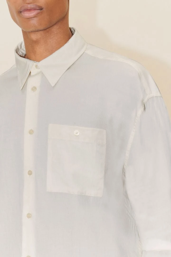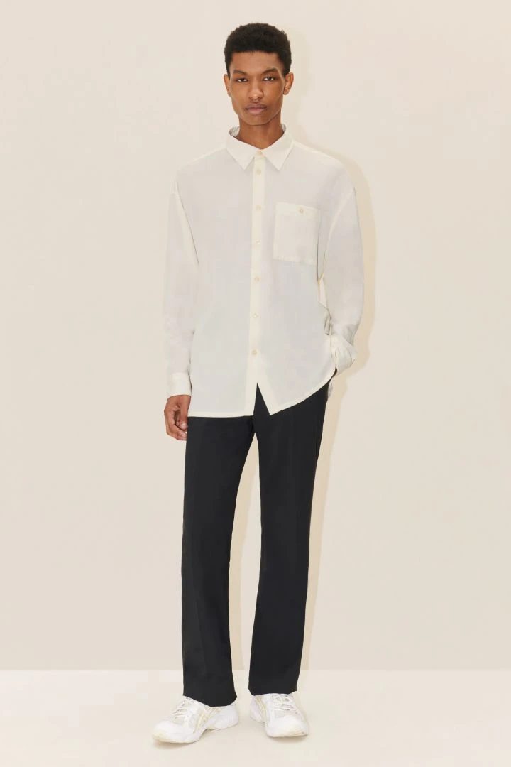 HARCON ist ein innovatives oversize Hemd mit großen Manschetten, einem Kentkragen und einer überschnittenen Schulter. An der Schulterpasse gibt es eine Quetschfalte, die mit einem Stitching Detail versehen ist.