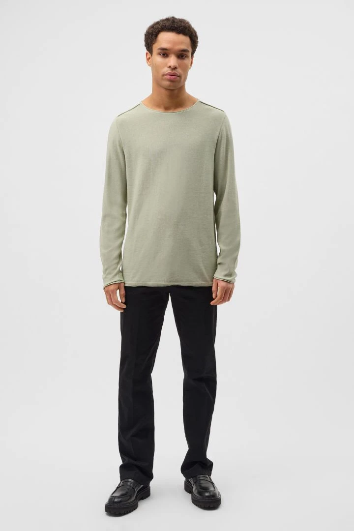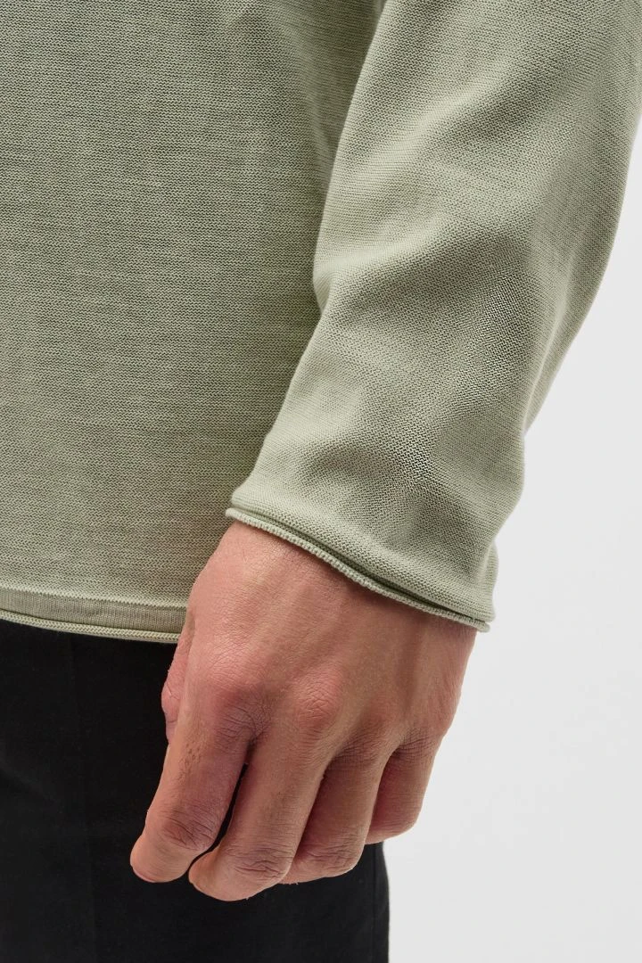 Einen Feinstrick Pullover, der sowohl zu klassischen, als auch sportiven Looks kombiniert werden kann bekommst du mit RIK. Besonders hervorzuheben sind die Rollkanten an den Abschlüssen und die dezent aufgesetzte Naht an der Schulter.
