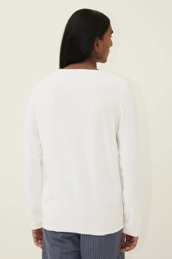 Einen Feinstrick Pullover, der sowohl zu klassischen, als auch sportiven Looks kombiniert werden kann bekommst du mit RIK. Besonders hervorzuheben sind die Rollkanten an den Abschlüssen und die dezent aufgesetzte Naht an der Schulter.