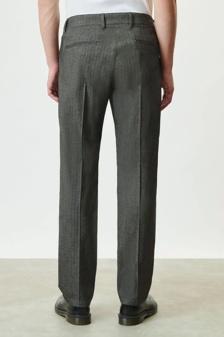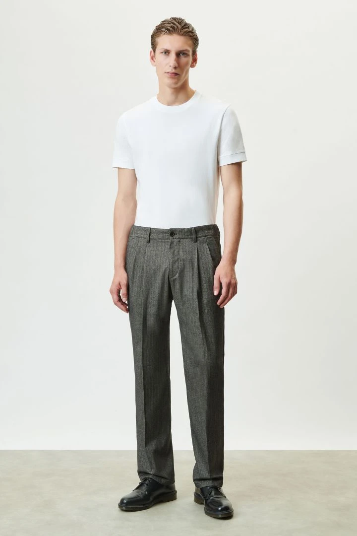 LEEK besteht aus einem Wollmix in Denim-Optik.