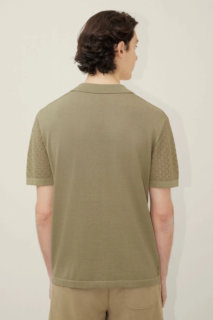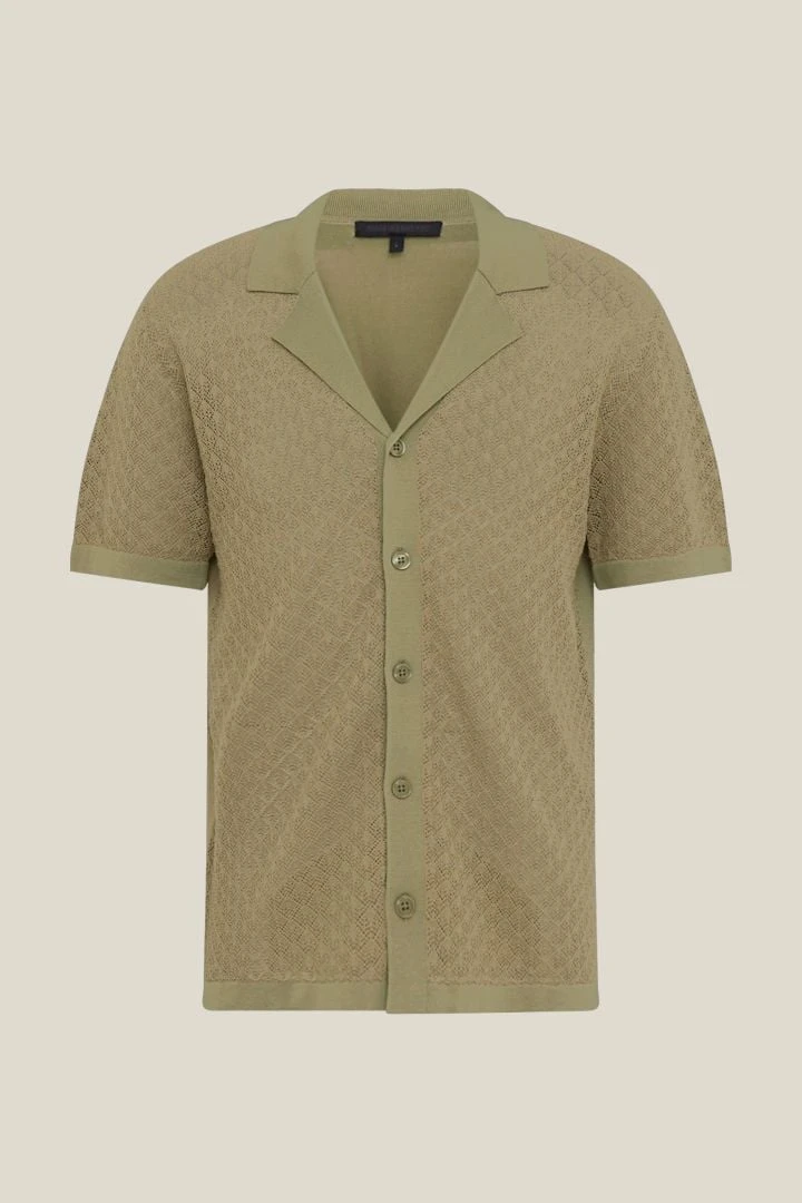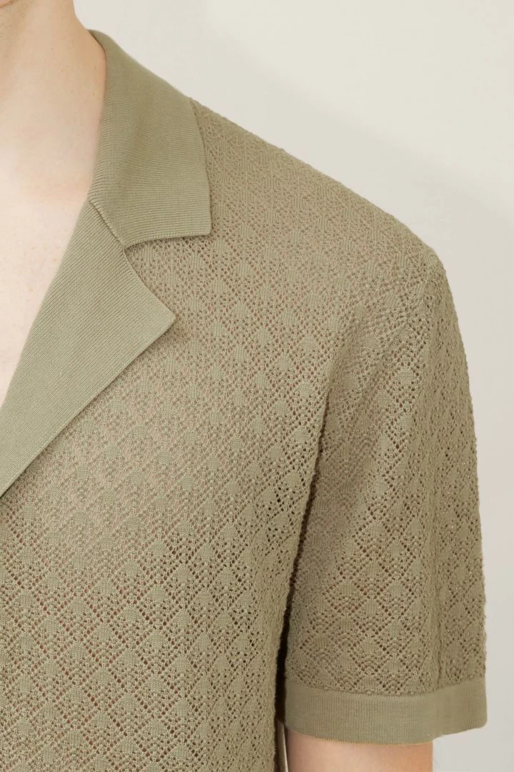 RAY ist ein Strickhemd mit klassischem Camp Collar und gerippten Abschlüssen an Ärmeln und Saum.
