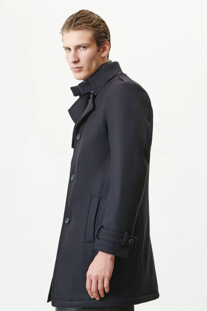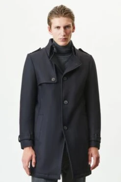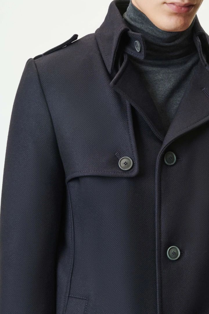 SKOPJE ist ein klassischer Trenchcoat und kommt mit typischen Details, wie Brust- und Schulterklappen oder Ärmelriegeln.