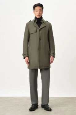 SKOPJE ist ein klassischer Trenchcoat und kommt mit typischen Details, wie Brust- und Schulterklappen oder Ärmelriegeln.