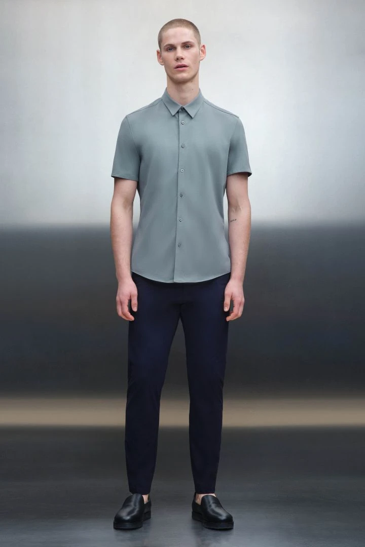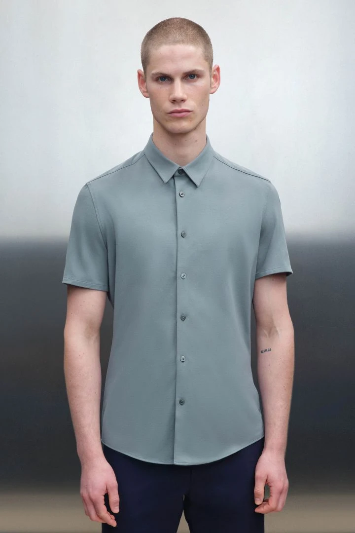 SPIN ist ein sportives Tight Fit Kurzarmhemd mit abgerundetem Saum.