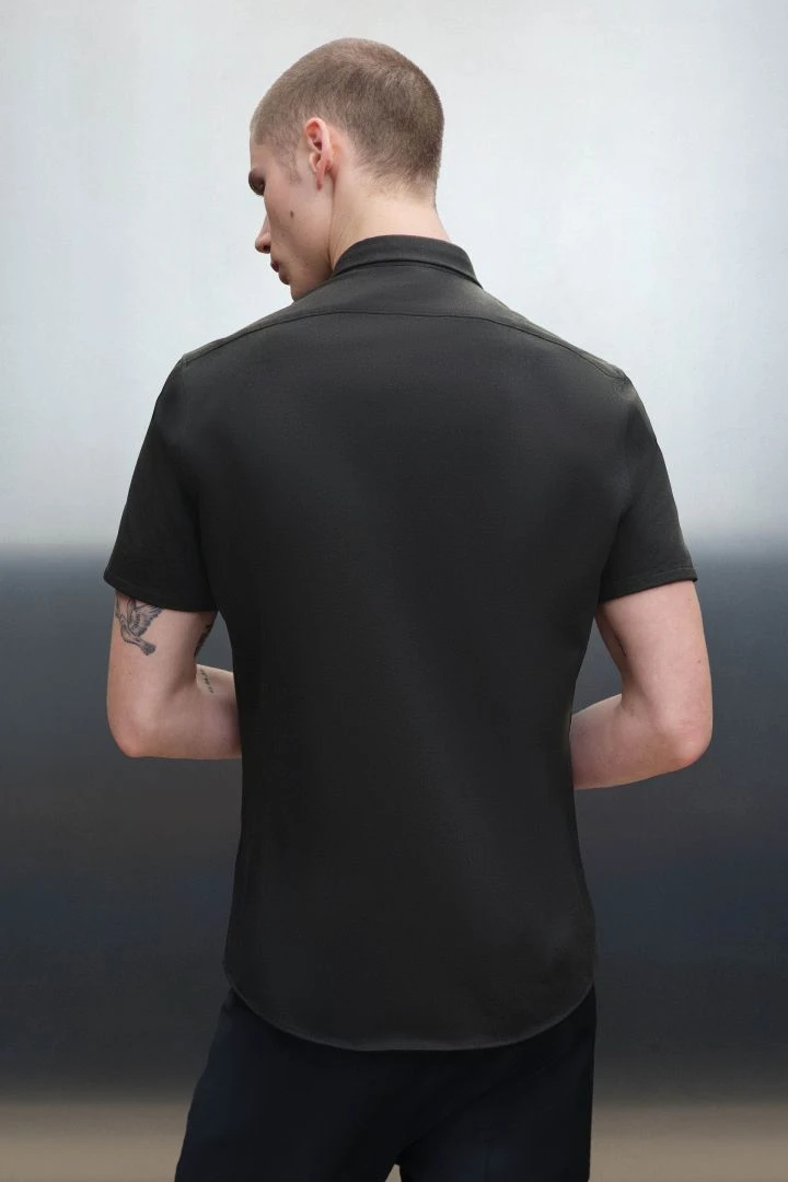 SPIN ist ein sportives Tight Fit Kurzarmhemd mit abgerundetem Saum.