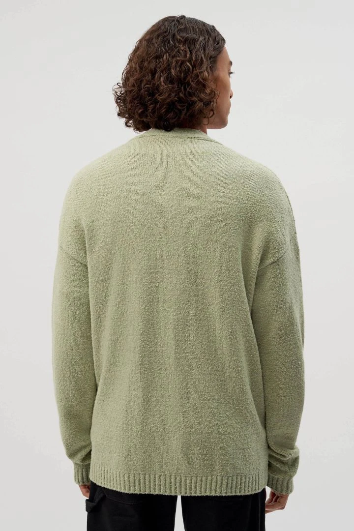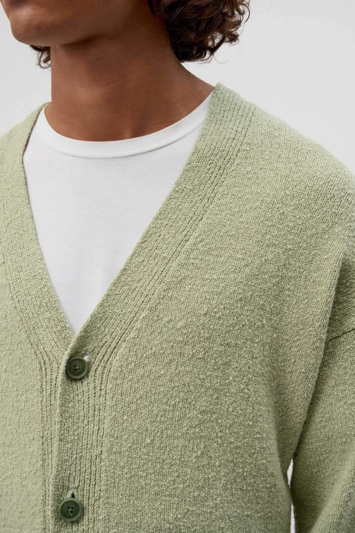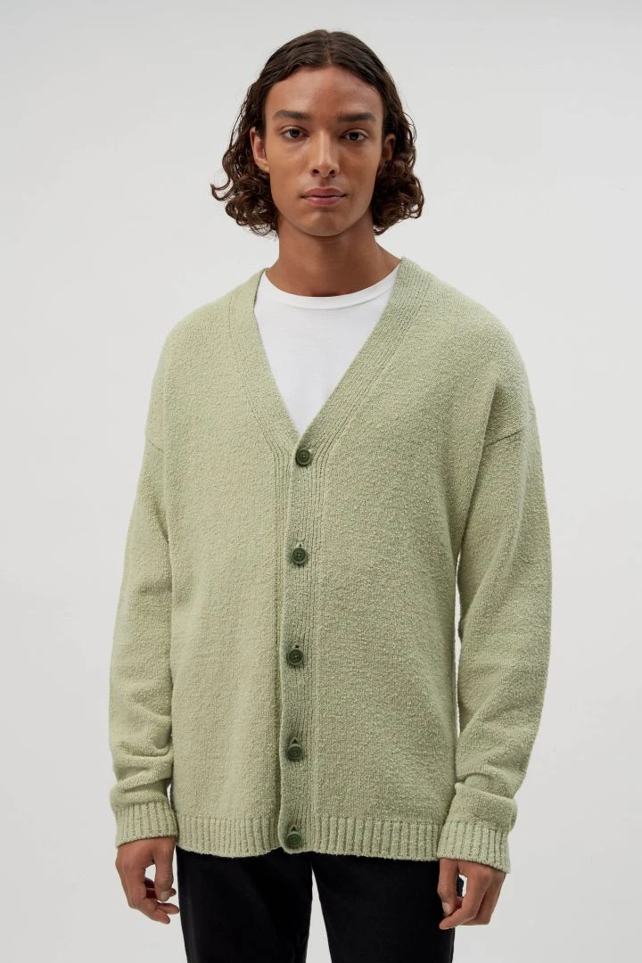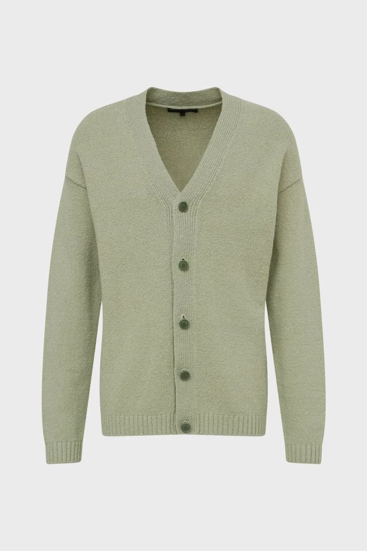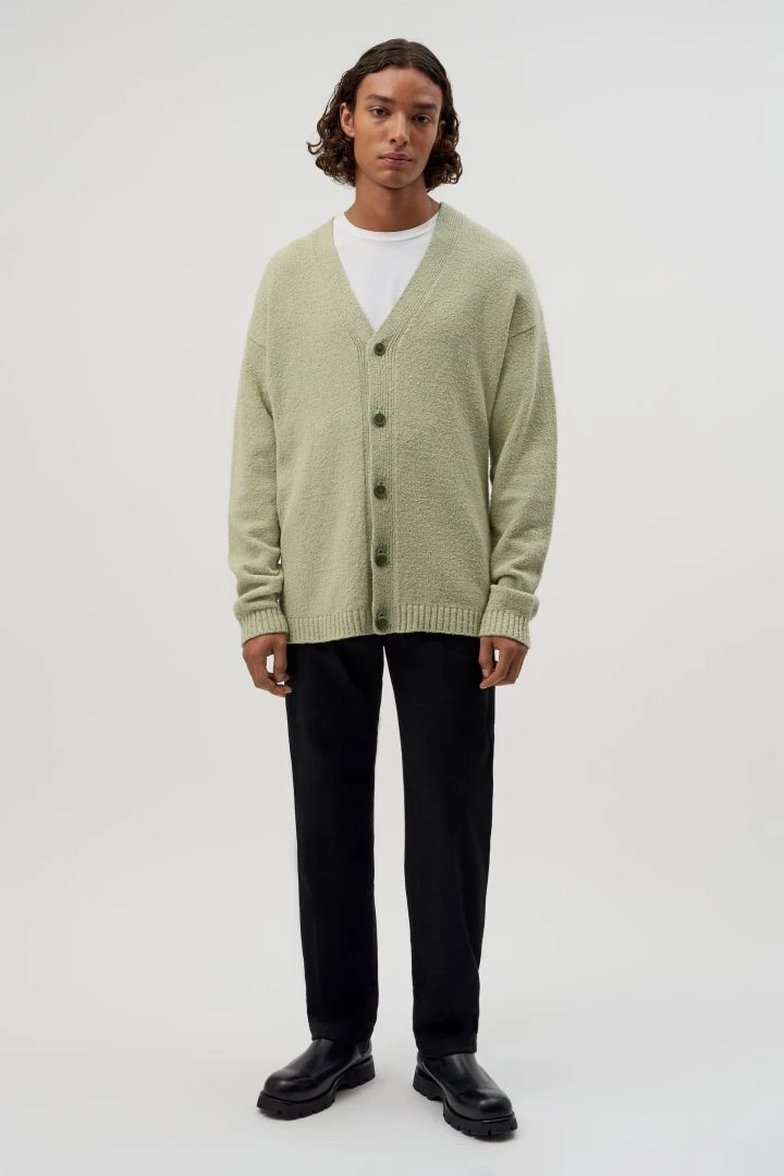 NADIR ist eine moderne Interpretation eines Strickcardigans und verfügt über tonal abgestimmte Knöpfe, leicht überschnittene Schultern und Rippendetails am Saum.