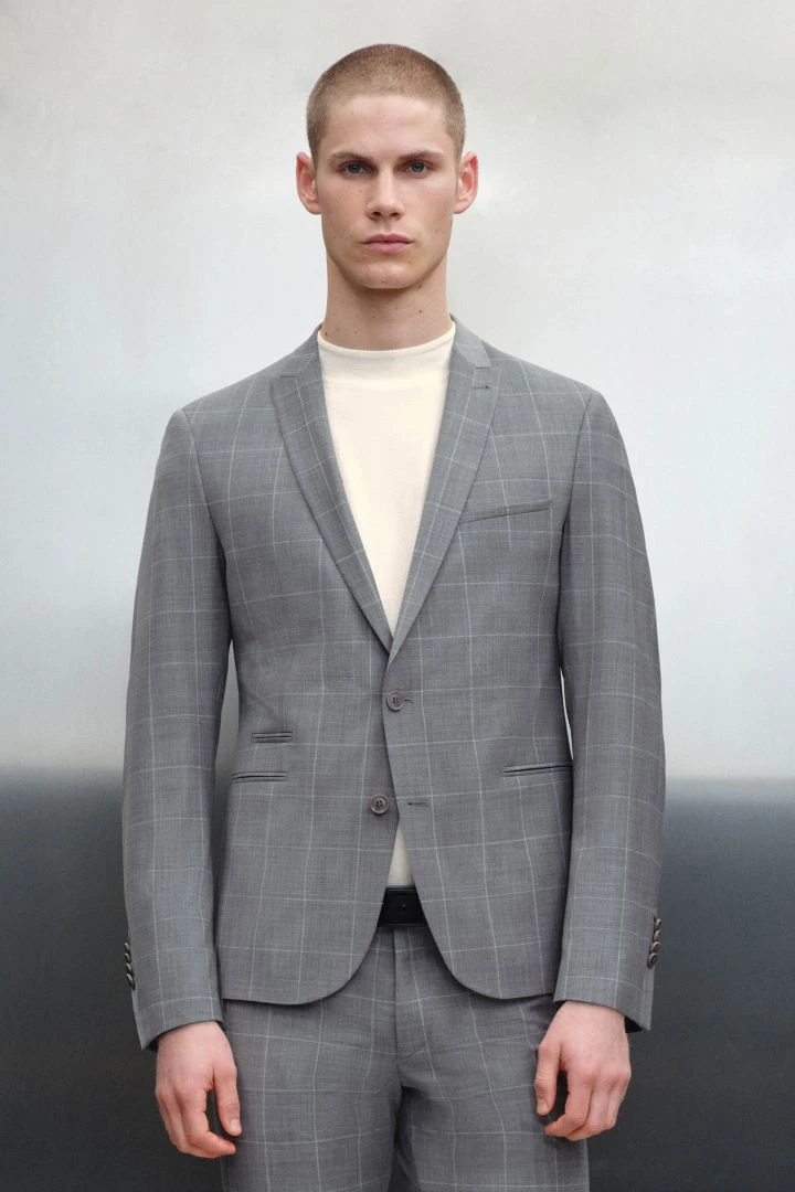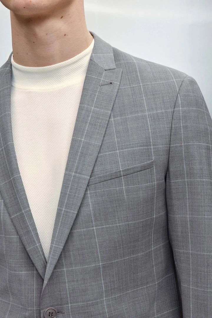 IRVING_SK ist ein klassisches Slim Fit Sakko mit 2 Knöpfen und einem schmalen steigenden Revers. Das besondere Tailoring wird durch die Paspeltaschen und die zusätzliche Billetttasche vervollständigt.