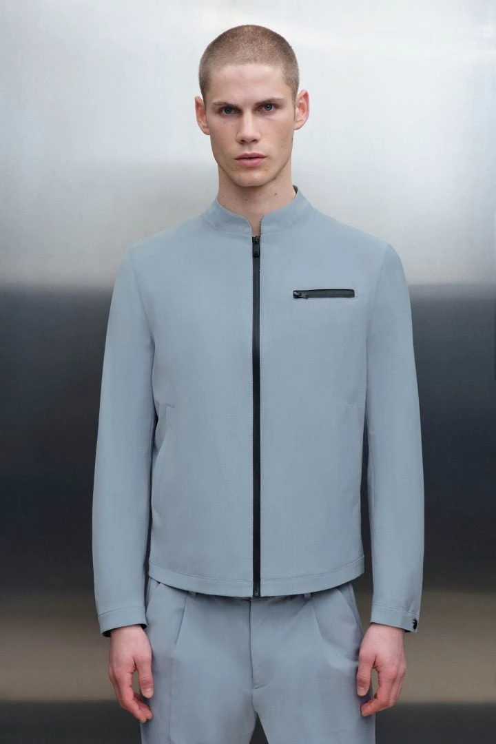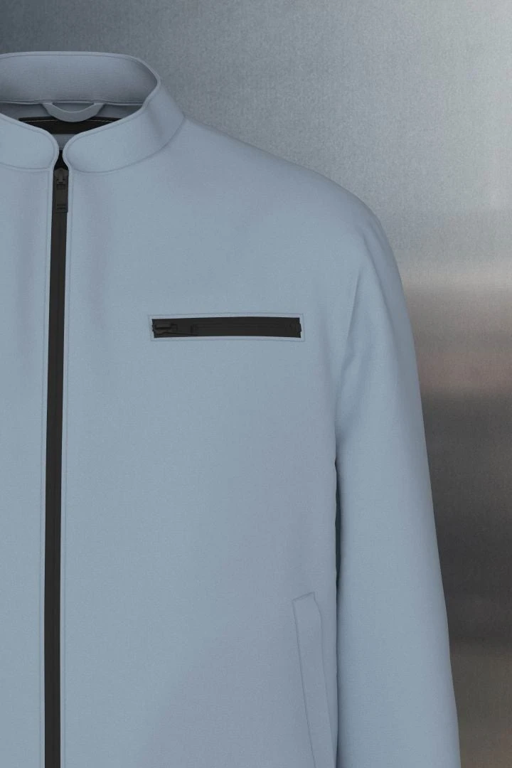 Mit NESSO bekommst Du eine technische Jacke. Sie hat einen leichten Stehkragen, eine Brusttasche und die Reißverschlüsse haben eine wasserabweisende und gummierte Beschichtung.