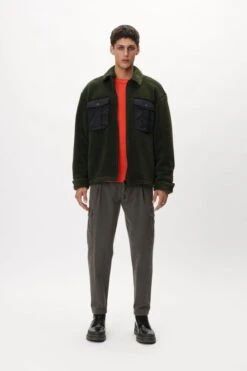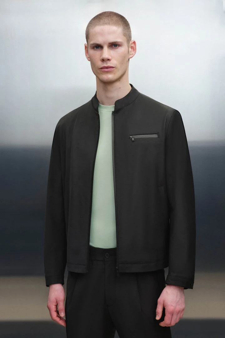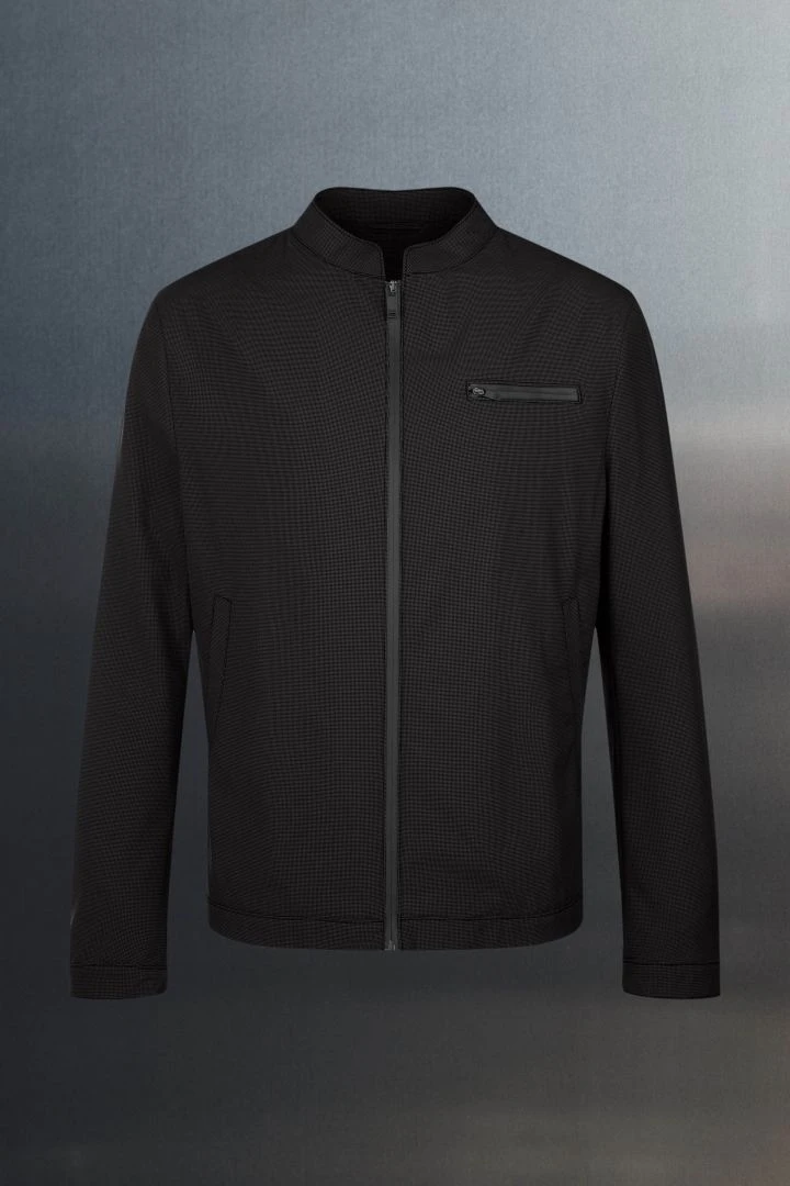 Mit NESSO bekommst Du eine technische Jacke. Sie hat einen leichten Stehkragen, eine Brusttasche und die Reißverschlüsse haben eine wasserabweisende und gummierte Beschichtung.