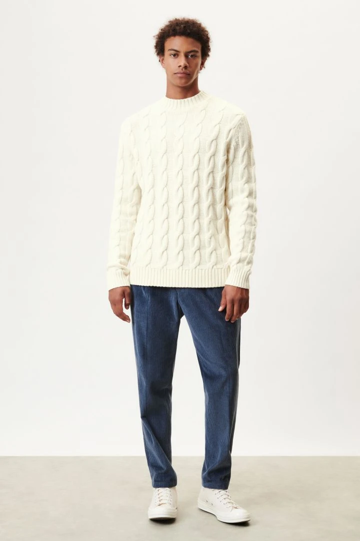 ZAYN ist ein locker geschnittener Pullover mit einem Stehkragen. Er verfügt über Rippbündchen an den Ärmeln und am Saum. Die leicht überschnittenen Schultern verleihen dem Pullover einen modernen Look.