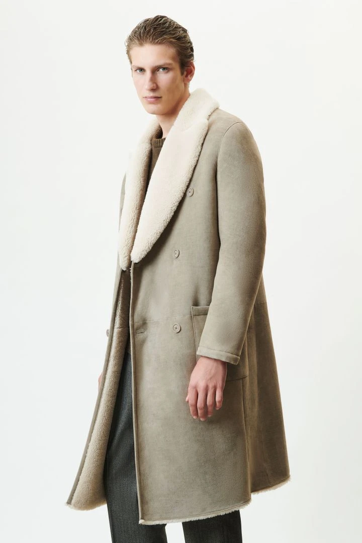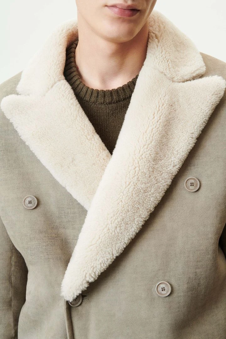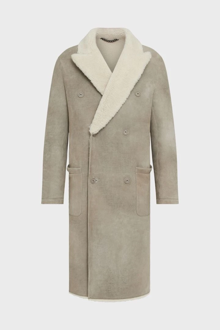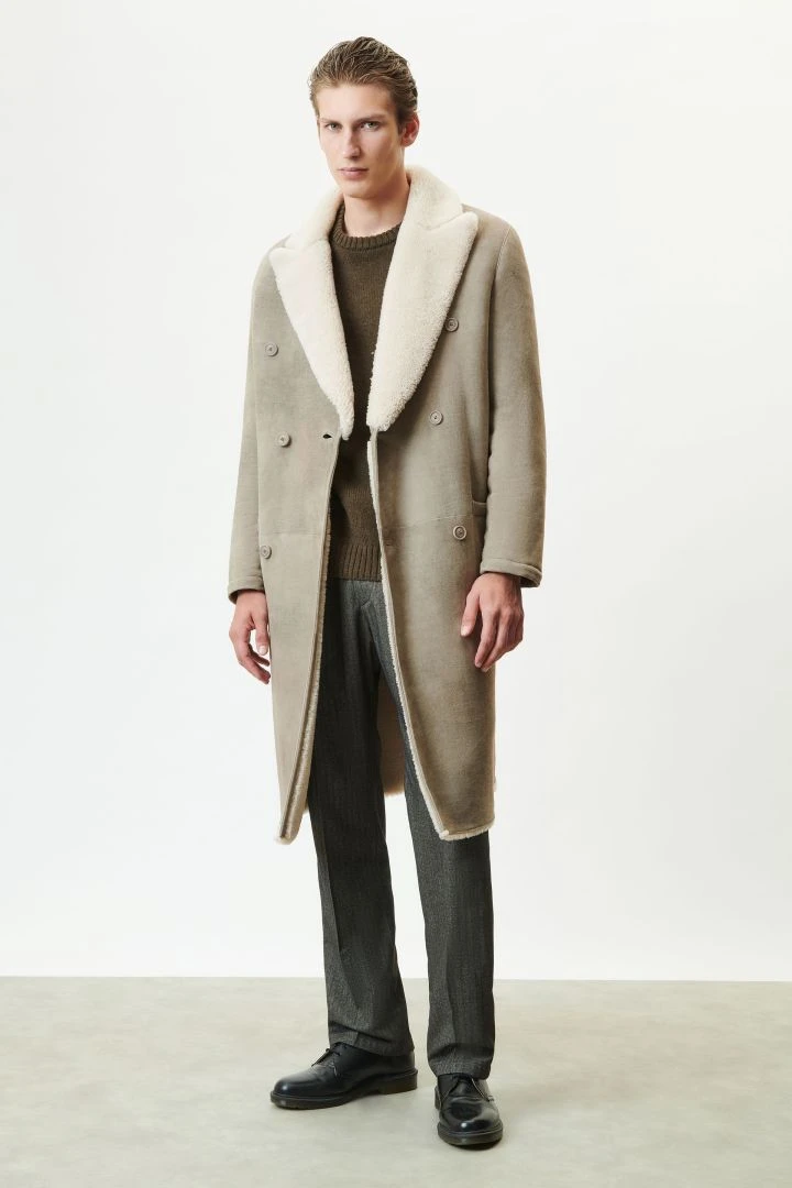 SKYE_L ist ein luxuriöser Ledermantel mit einem edlen Lamfellkragen und einem eleganten zweireihigen Schnitt. Dieser exklusive Mantel verbindet hochwertige Materialien mit einem zeitlosen Design.